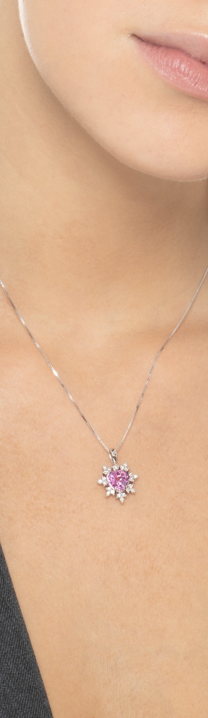 Rosa Saphir Halskette mit Diamanten Weißgold 750