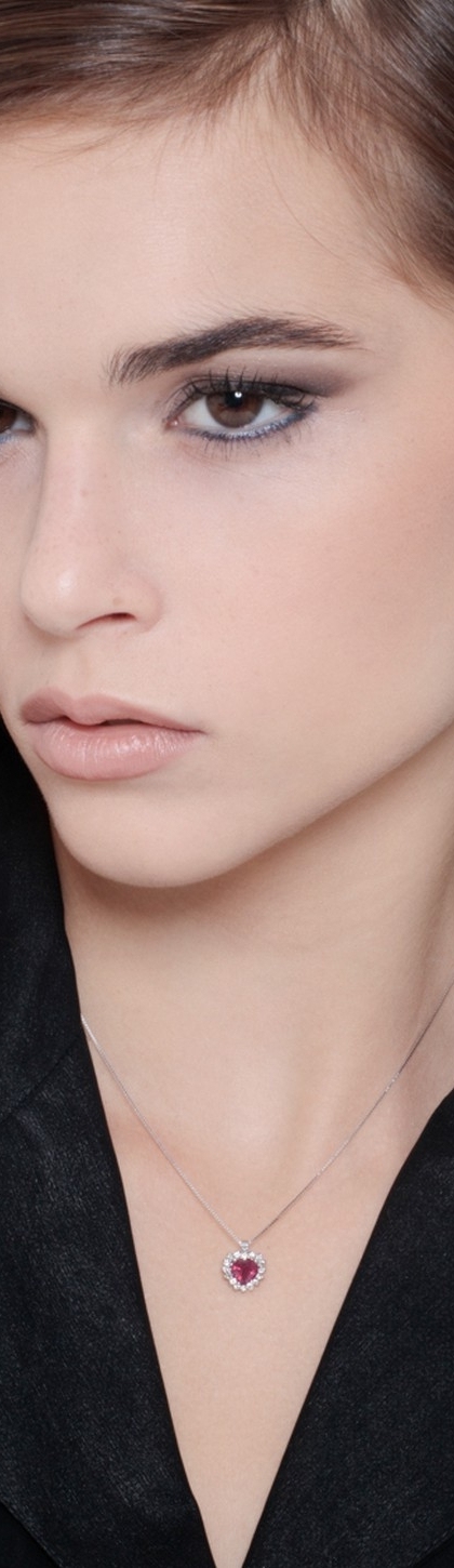 Rubin Herzanhänger mit Diamanten in Weißgold Kette