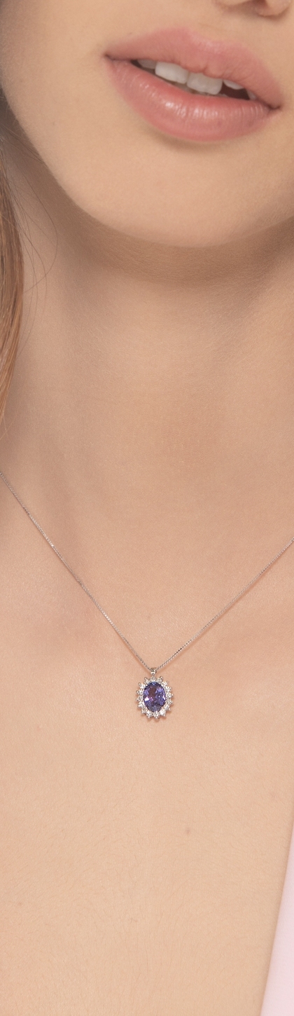 Tansanit Anhänger mit Diamanten in Weißgold Kette