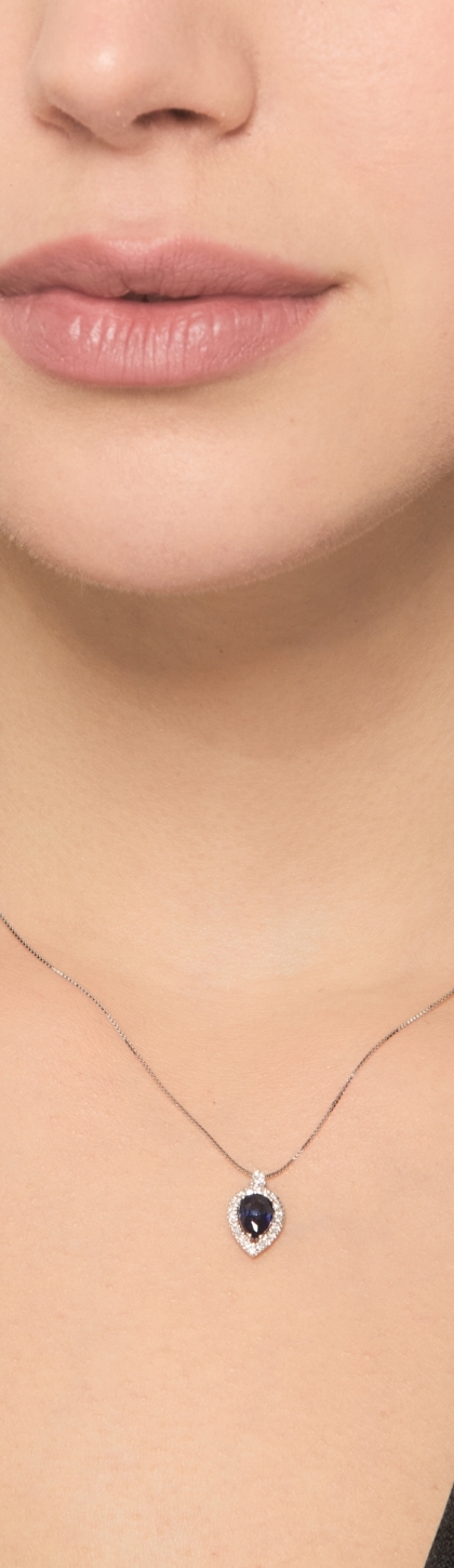 Weißgold 18K Damenkette mit blauem Saphir und Diamanten