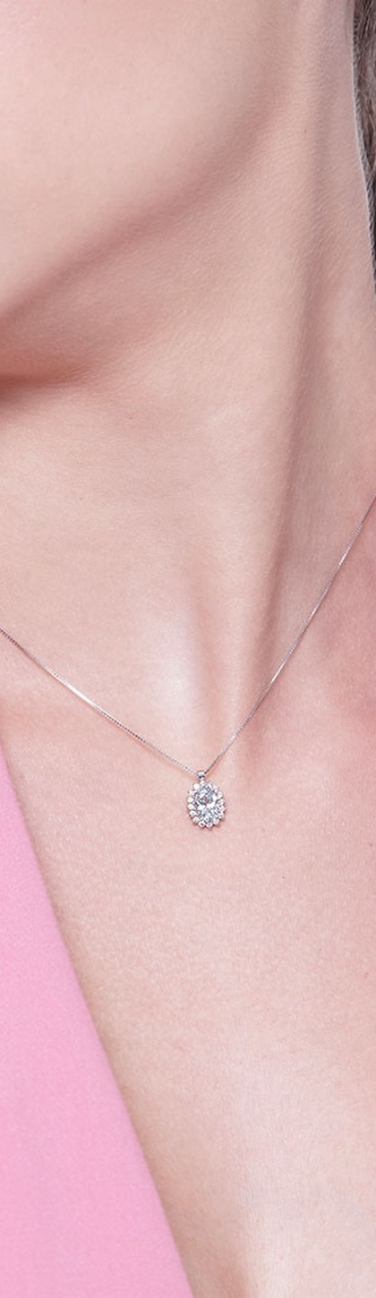 Weißgold-Halskette mit Aquamarinstein und Diamant-Anhänger
