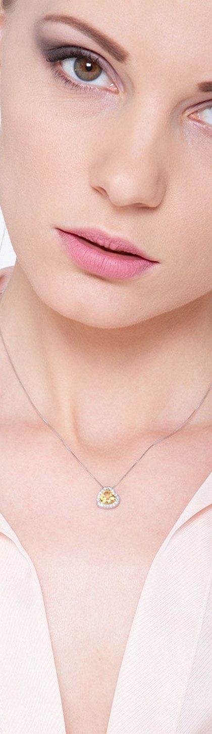 Weißgold Herz Kette mit Diamanten- und Citrin-Anhänger