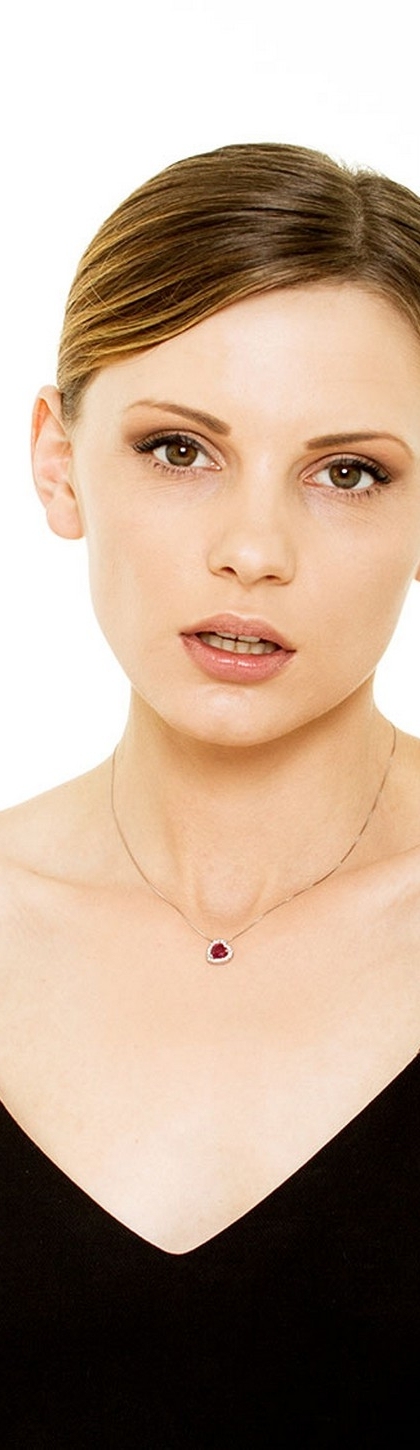 Weißgold Herzkette mit Rubin-Anhänger und Diamanten