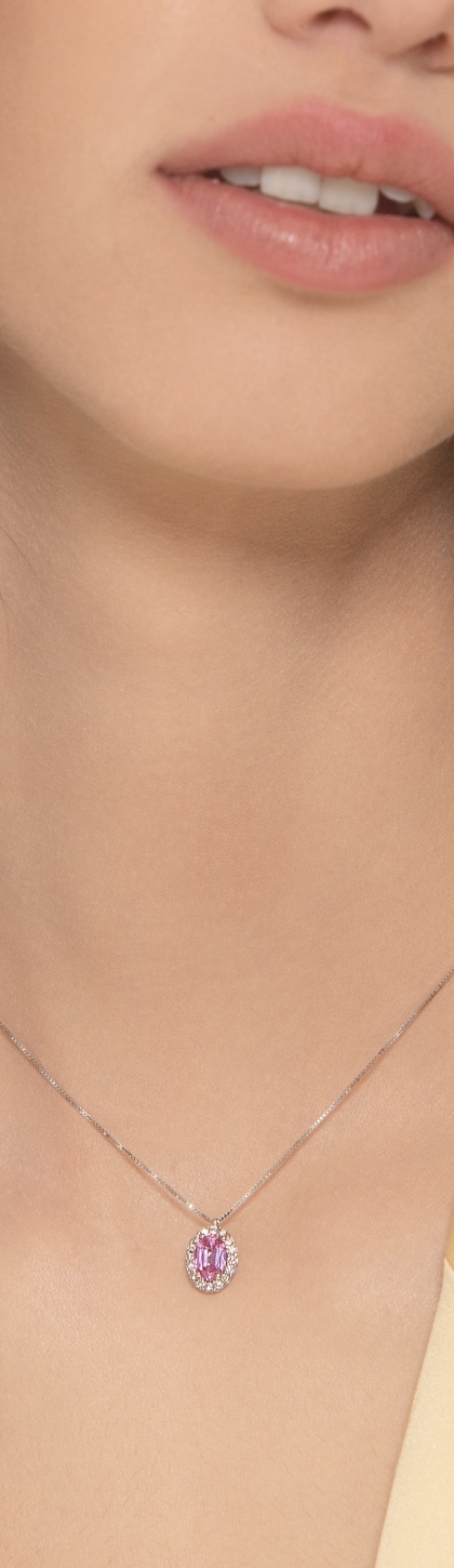 Weißgold Kette mit Diamant- und Saphiranhänger