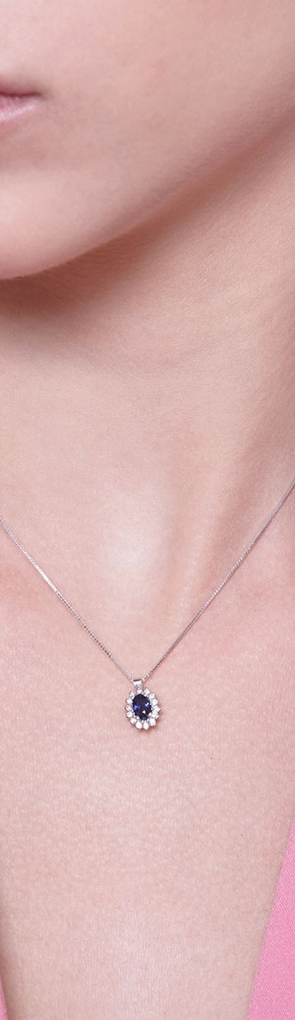 Weißgold Kette mit Diamanten und blauem Saphir