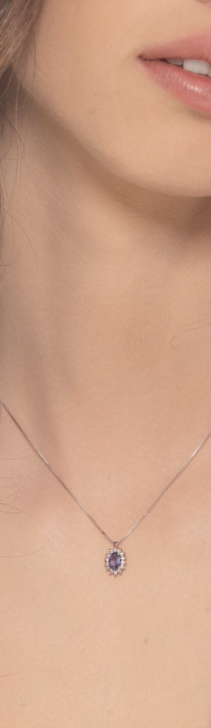 Weißgold-Kette mit Tansanit-Anhänger und 14 Diamanten
