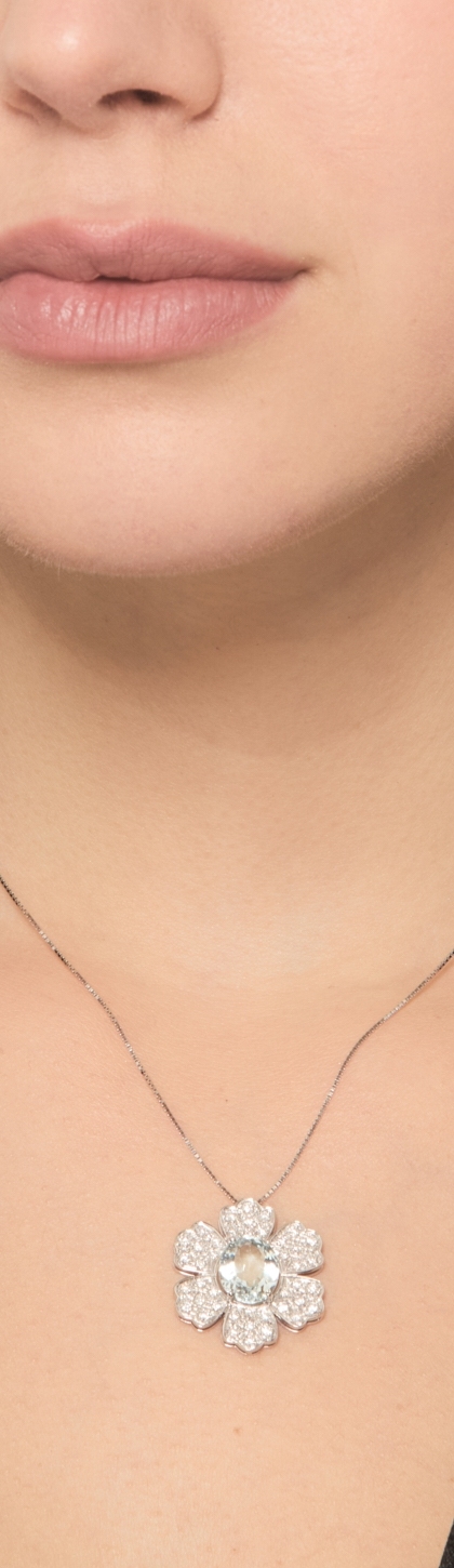 18K Weißgold Blumenkette mit Aquamarin und Diamanten