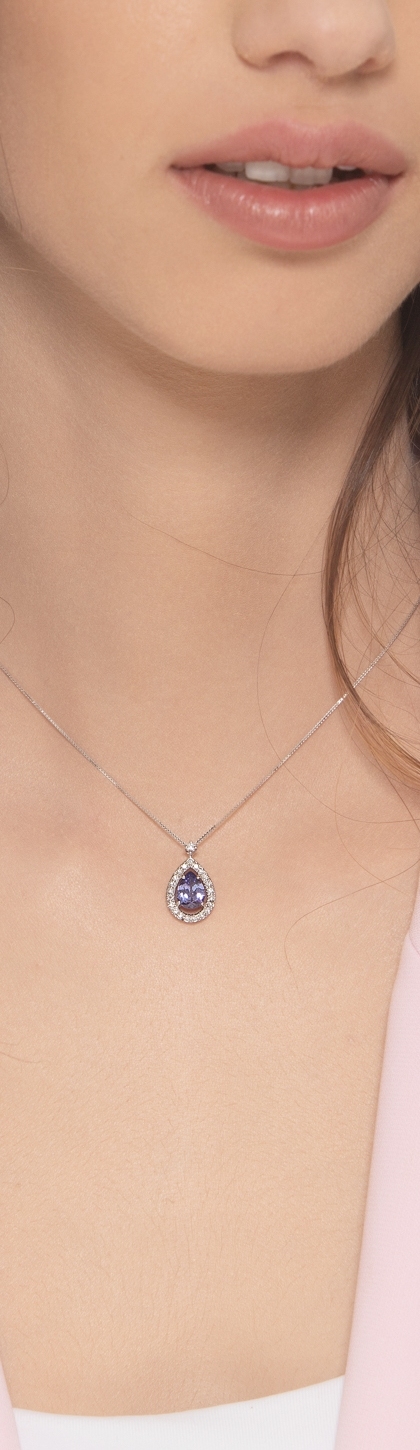 Damenkette 18K Weißgold mit Tansanit und Diamanten