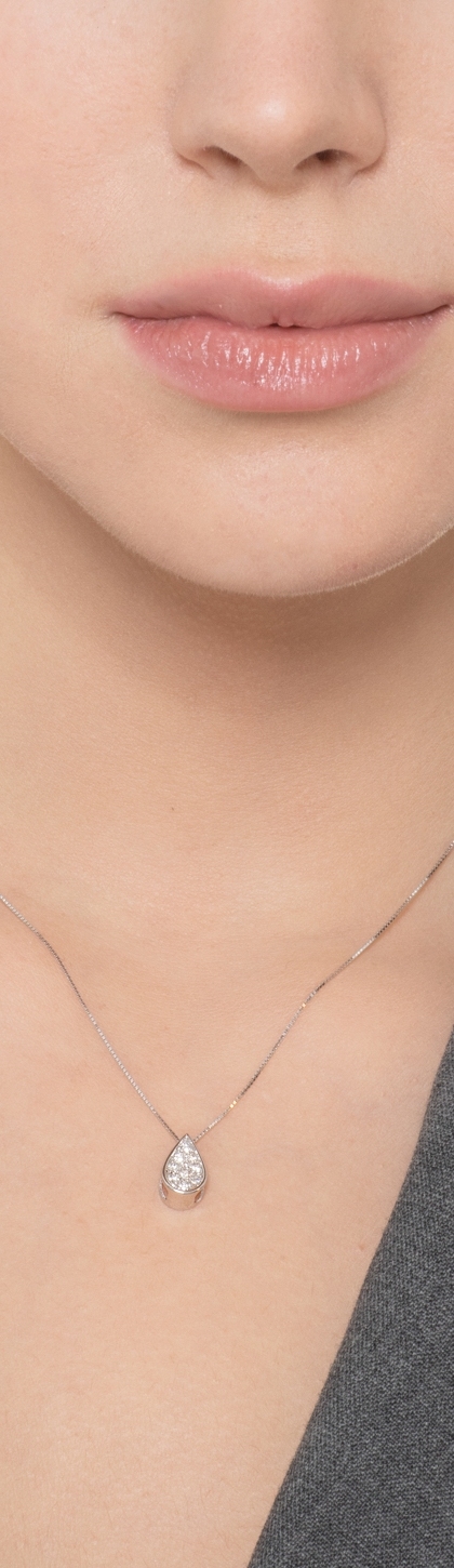 Damenkette aus 18k Weißgold mit einem tropfenförmigen Diamant-Anhänger