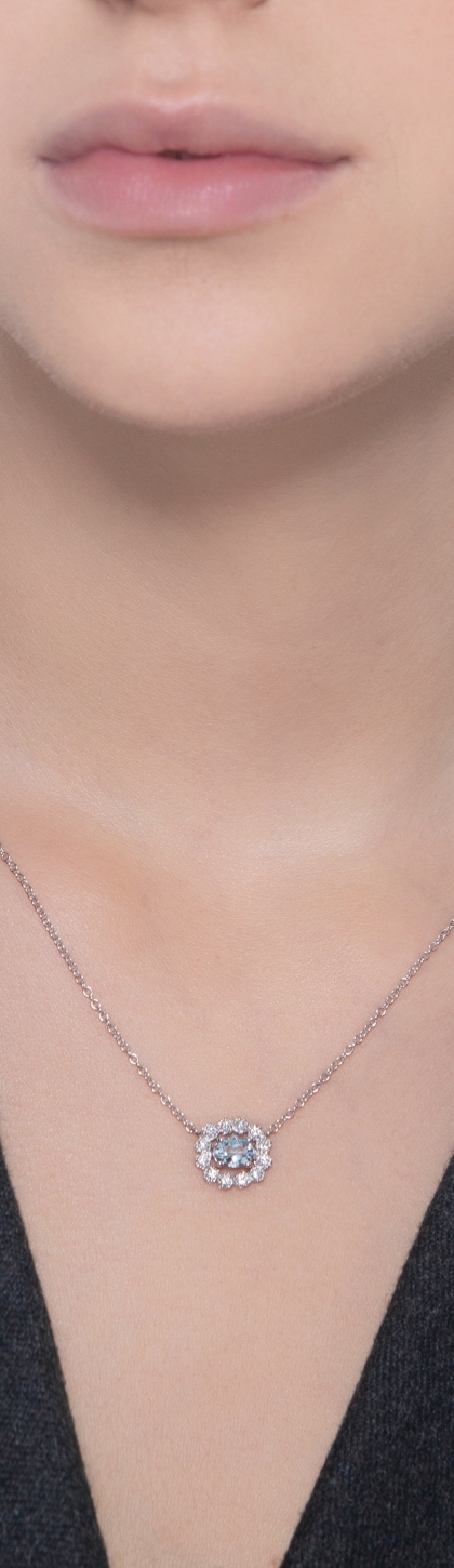 Damenkette aus Weißgold mit Aquamarin und Diamanten