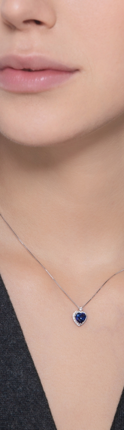 Halo Herzkette mit blauem Saphir und Diamanten Weißgold