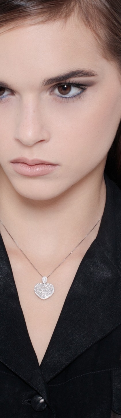 Halskette aus 18k Weißgold mit Diamant-Herz-Anhänger