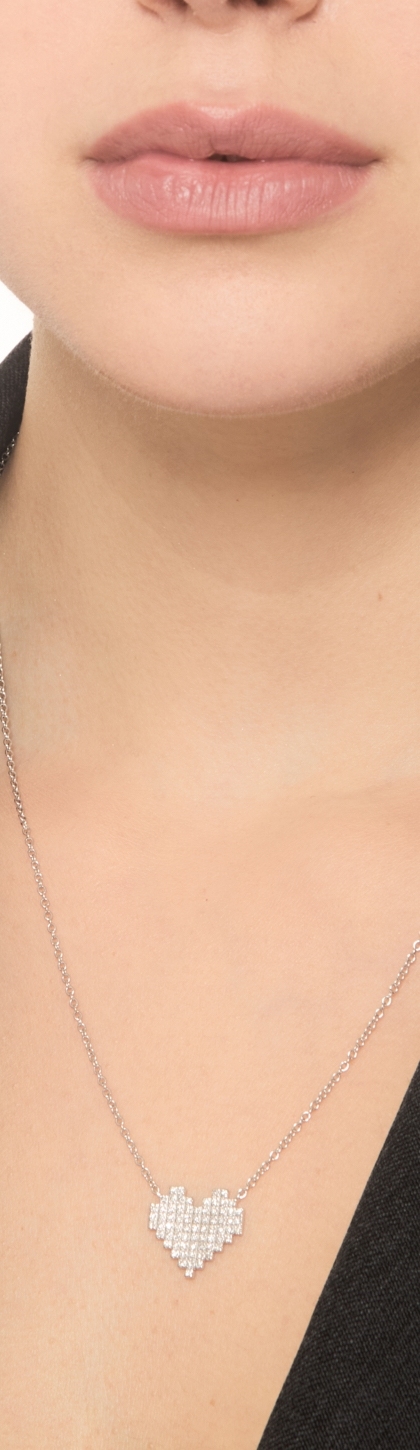 Halskette aus 750 Weißgold mit Pixel Herz-Anhänger aus Diamanten