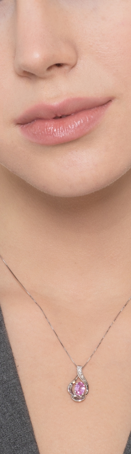 Halskette aus 750er Weißgold mit rosa Saphiren und Diamanten