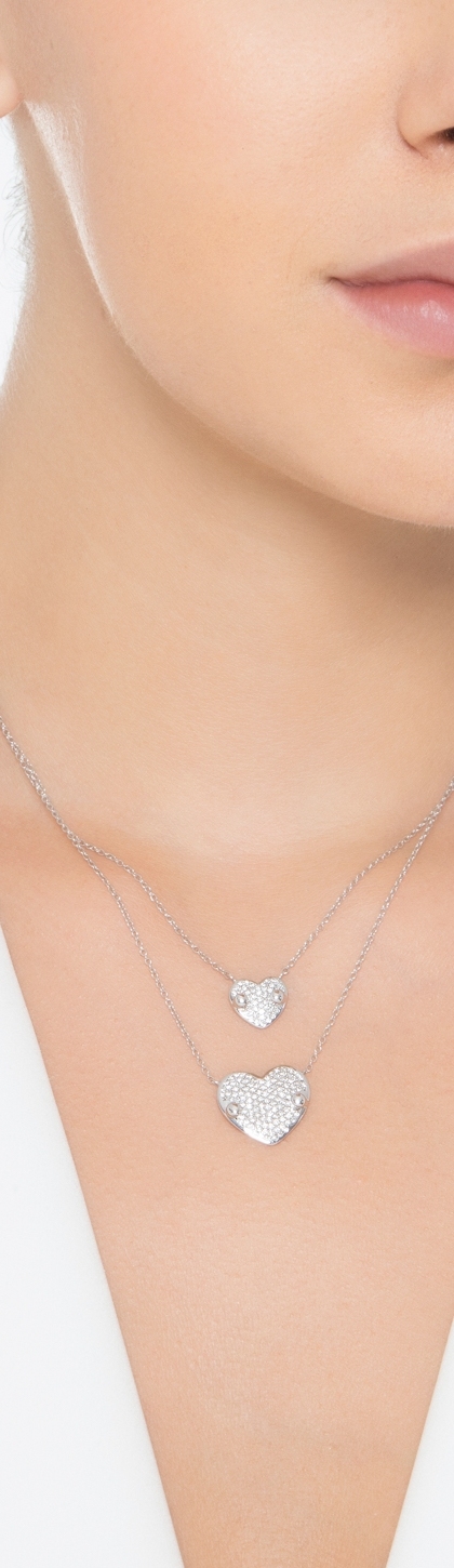 Halskette Doppelkette Weißgold mit Herzen aus Brillanten