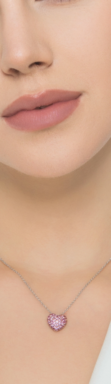 Herzkette mit rosa Saphiren Weißgold 750