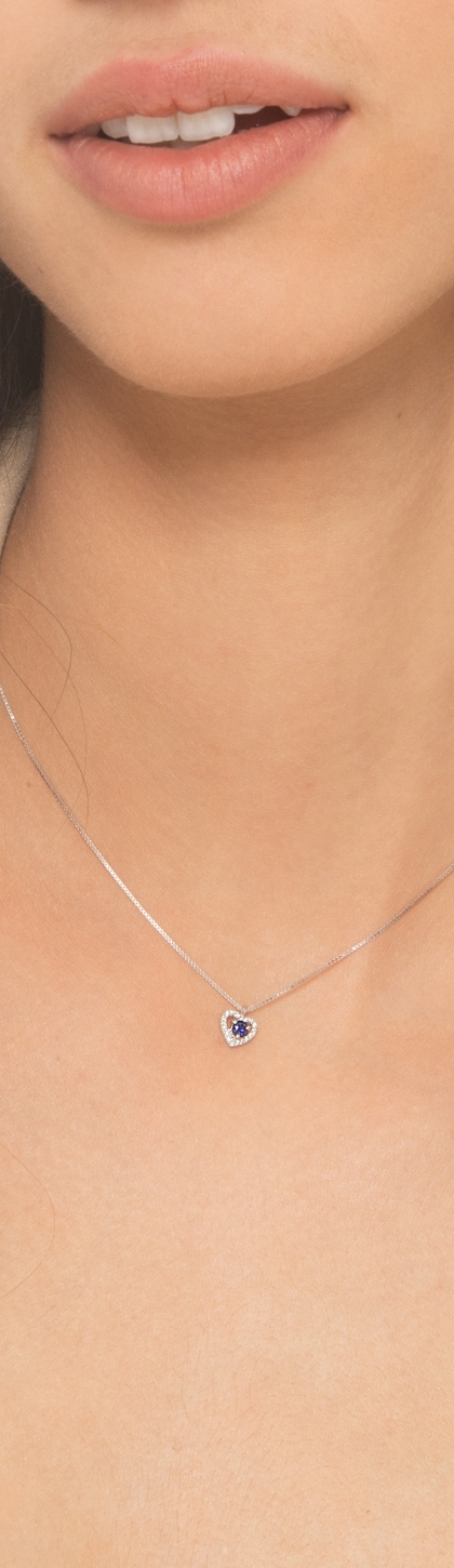 Herzkette Weißgold 18K mit einem blauen Saphir und Brillanten