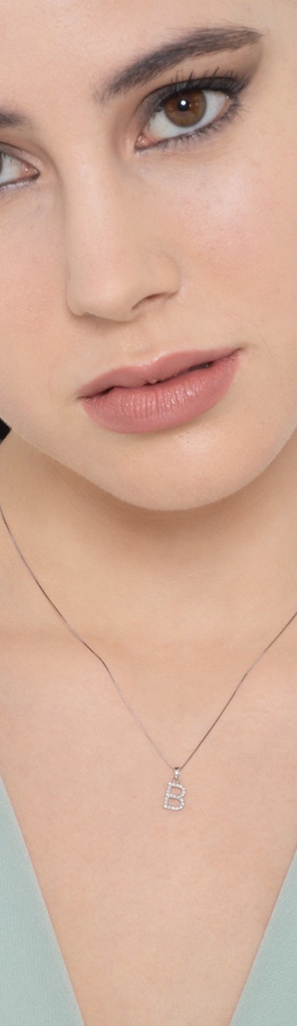 Kette aus Weißgold 18k mit Buchstabe B aus Diamanten