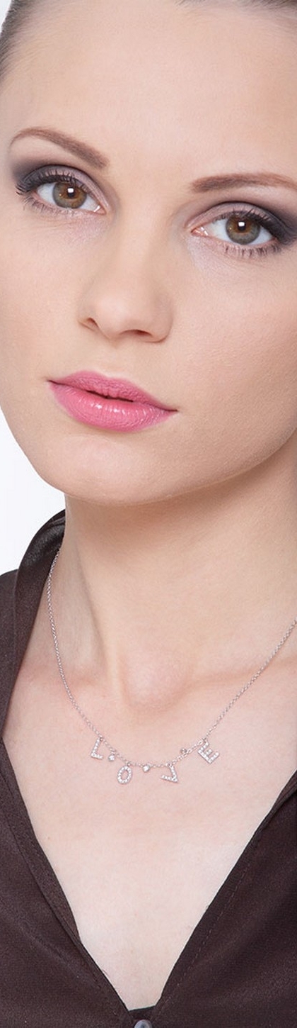 Kette aus Weißgold mit Buchstaben LOVE aus Diamanten