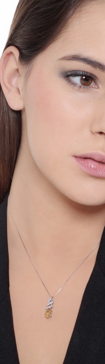 Moderne Weißgoldkette mit Diamant- und Citrinanhänger
