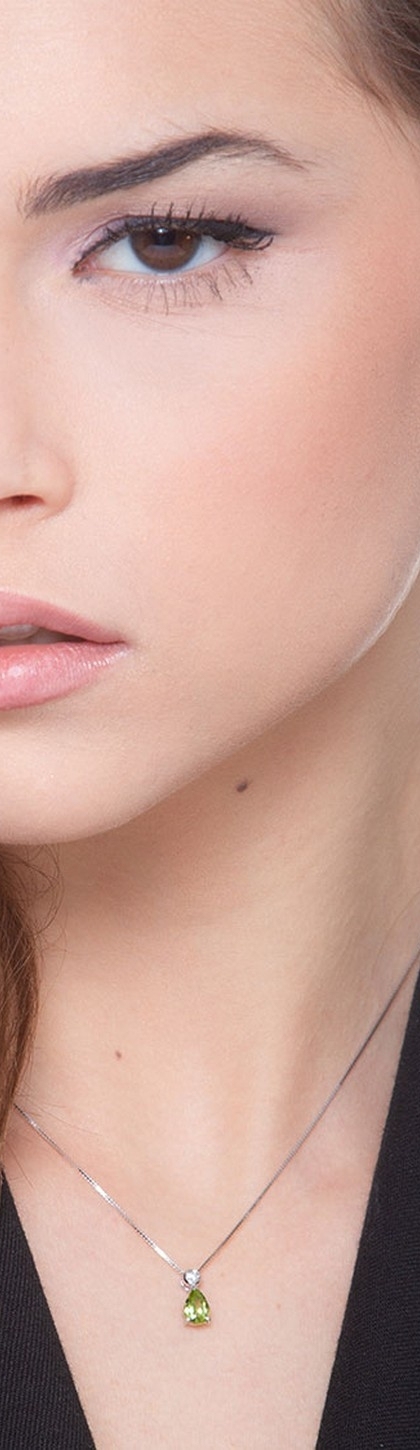 Peridot Anhänger mit Brillanten in 750er Weißgold Kette