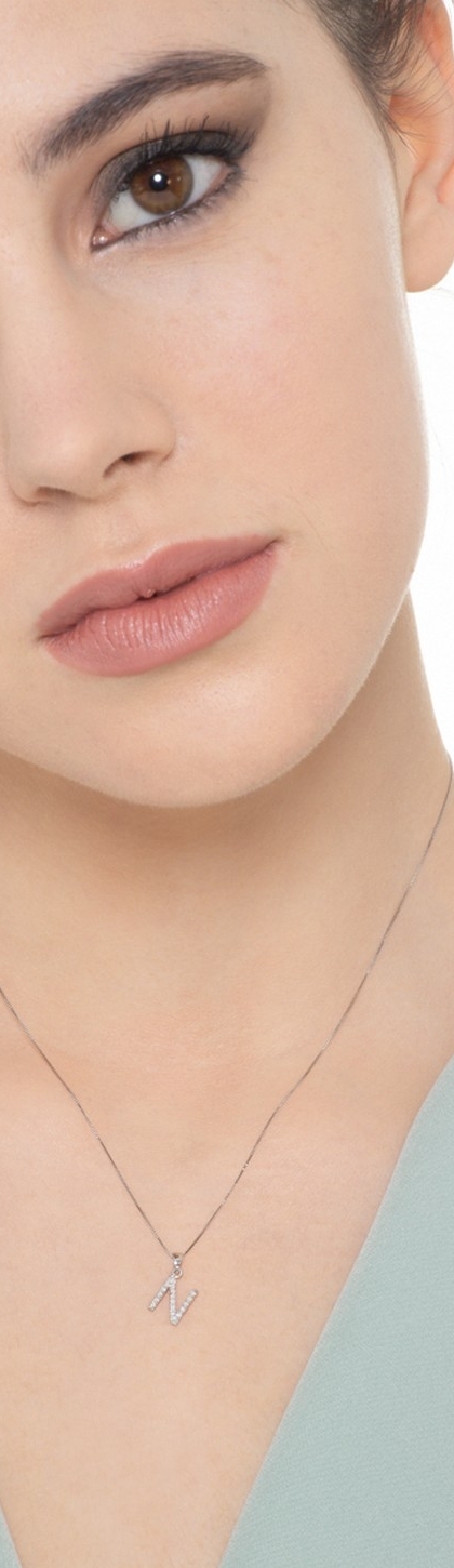 Weißgold 18k Kette mit Buchstabe N aus Brillanten