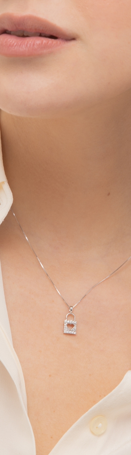 Weißgold 750 Kette mit Herz-Schloss-Anhänger aus Brillanten
