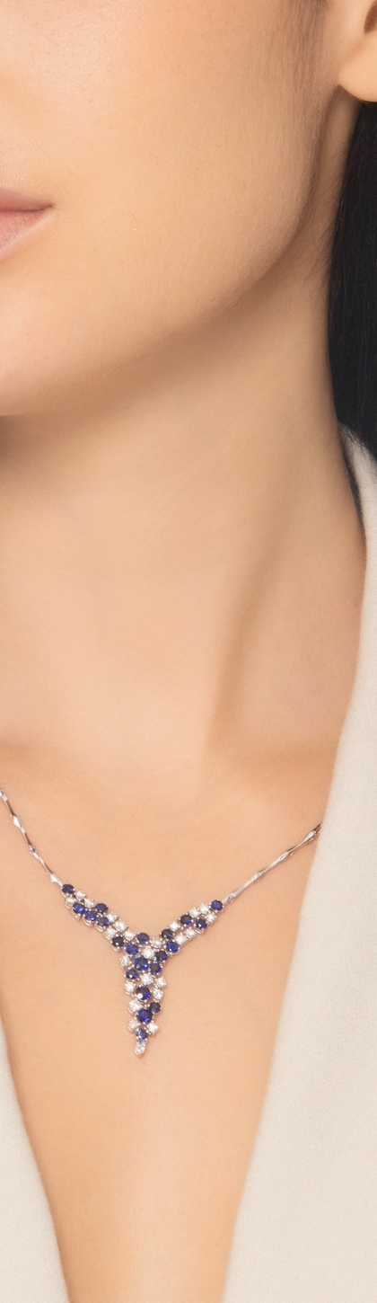 Weißgold Damenkette mit Saphiren und Diamanten