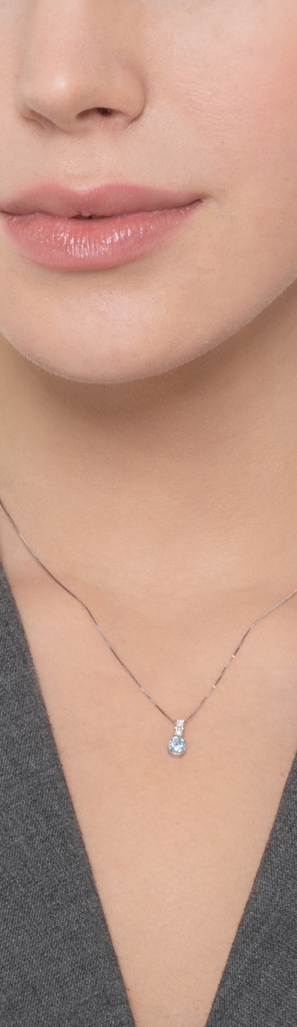 Weißgold Halskette mit Aquamarin und Diamanten