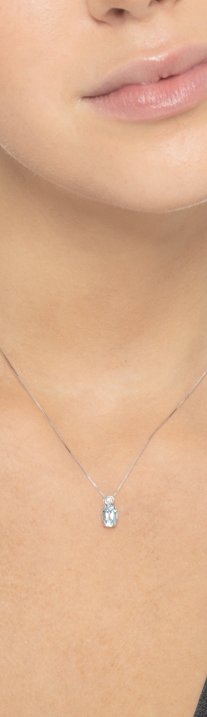 Weißgold-Halskette mit Diamant- und Aquamarin-Anhänger