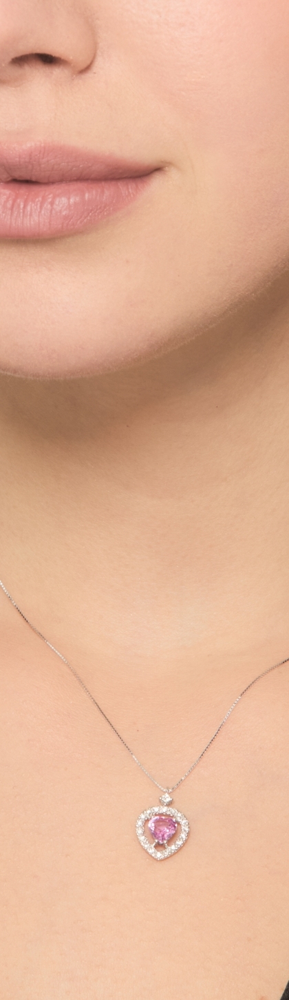 Weißgold Halskette mit rosa Saphir und Diamanten