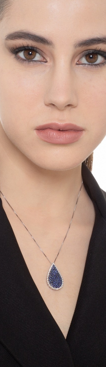 Weißgold Kette Damen mit blauem Saphir-Anhänger