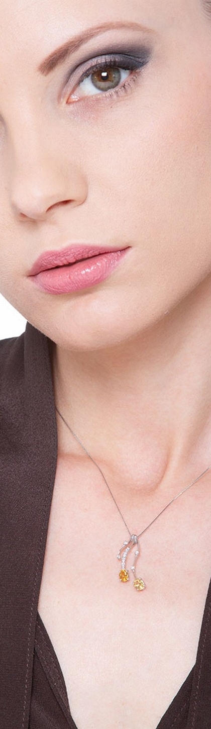 Weißgold Kette Damen mit Citrin Anhänger und Diamanten