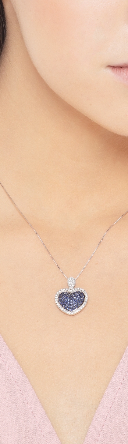 Weißgold Kette Damen mit Herzanhänger aus Saphiren und Diamanten