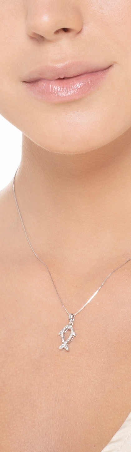 Weißgold-Kette mit fischförmigem Diamant-Anhänger