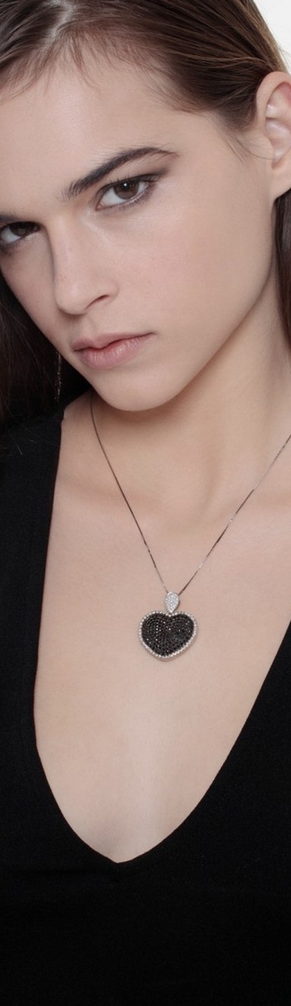 Weißgold Kette mit Herz Anhänger aus schwarzen und weißen Diamanten