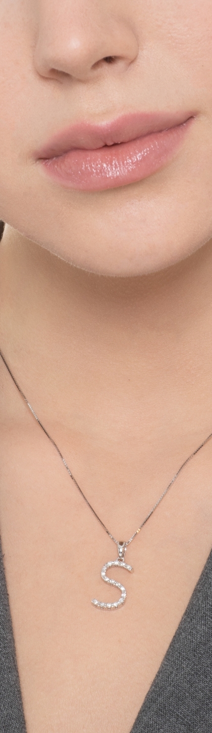 Weißgoldkette mit Diamantbuchstabe S