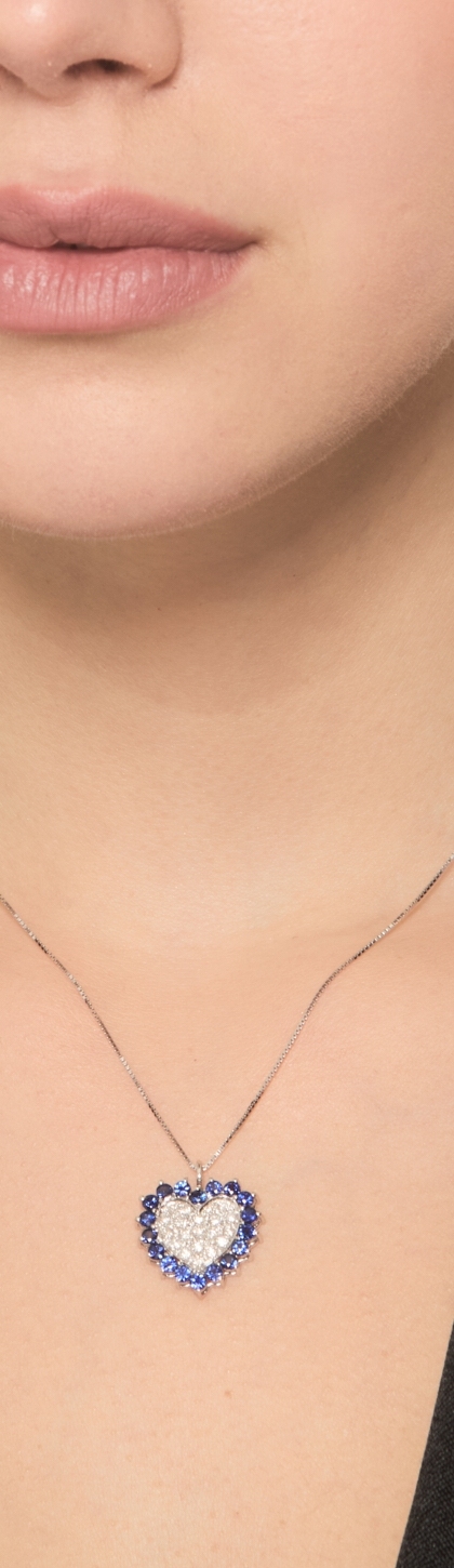 Weißgoldkette mit Herzanhänger aus blauen Saphiren und Diamanten