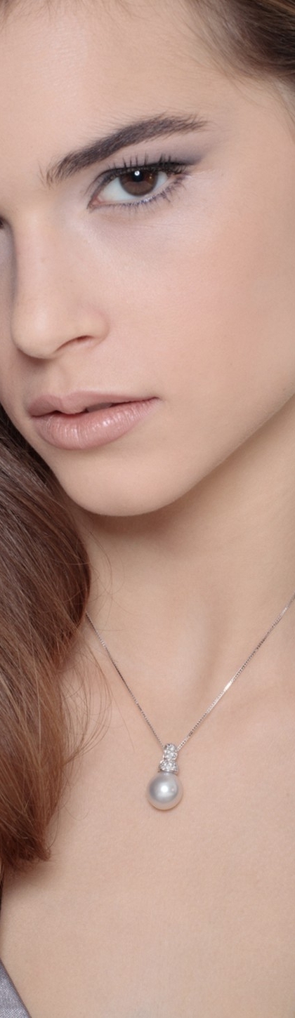 Perlenkette Damen mit Diamanten aus Weißgold