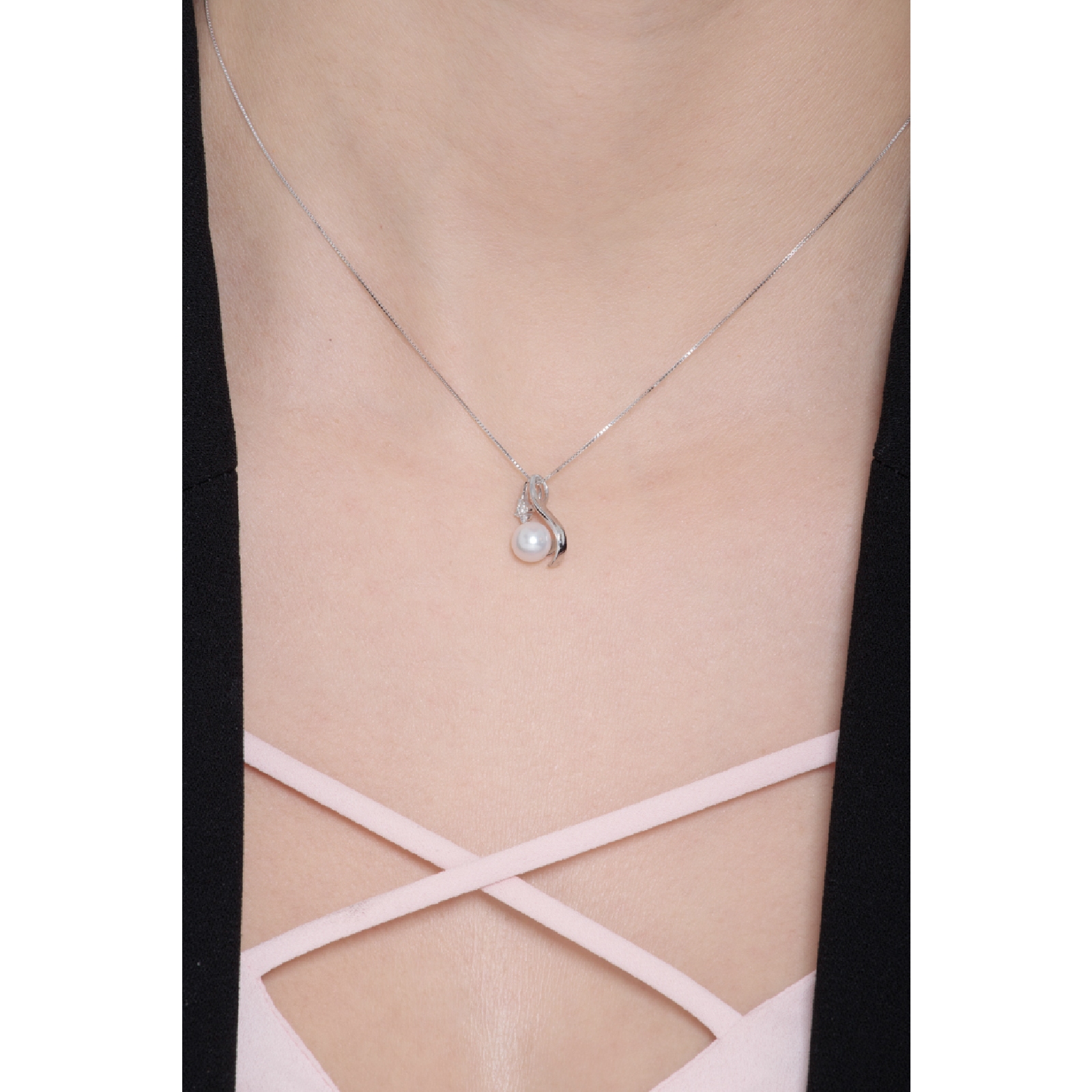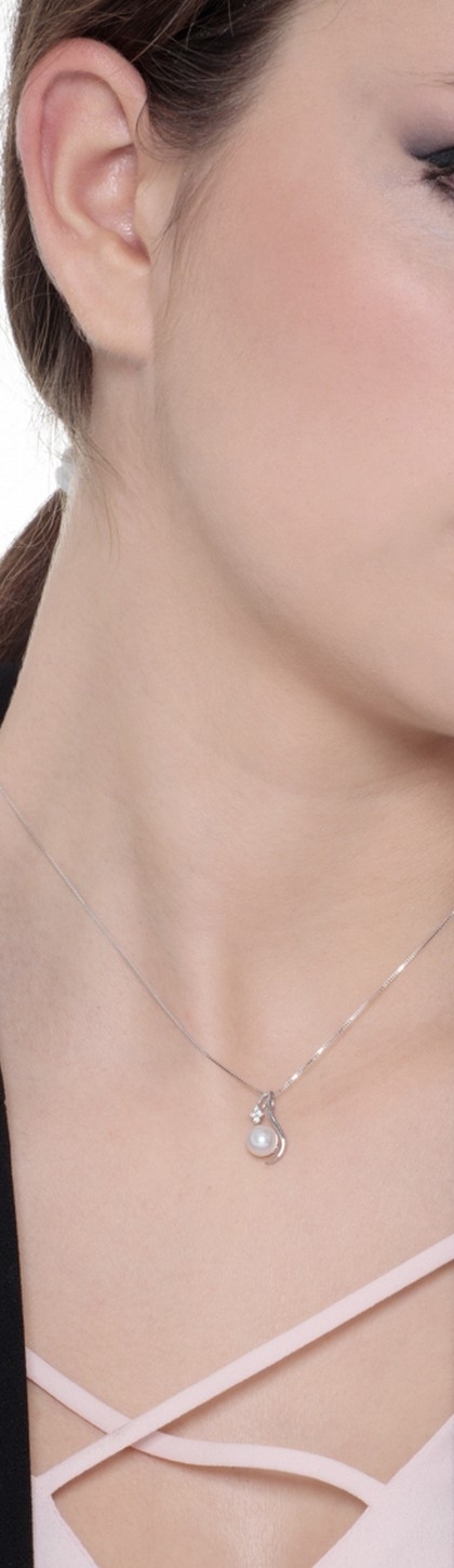 Weißgoldkette 18 Karat mit Perle und Diamanten