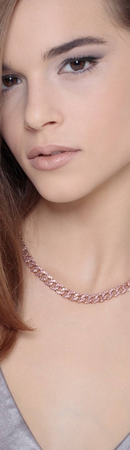 Iced Out Kette aus Roségold 18k mit rosa Saphiren