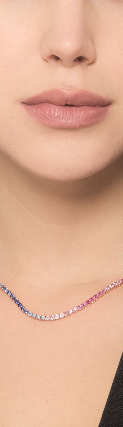 Tennis Kette 18 K Roségold mit Saphiren Rainbow