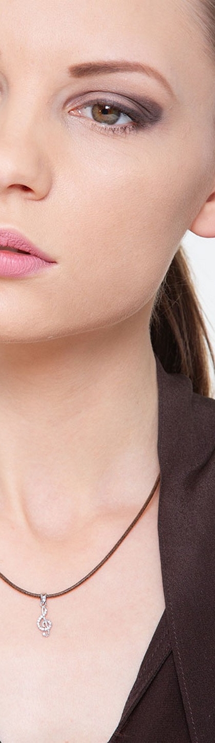 Weißgold 18K Anhänger mit Violinschlüssel mit Zirkonia