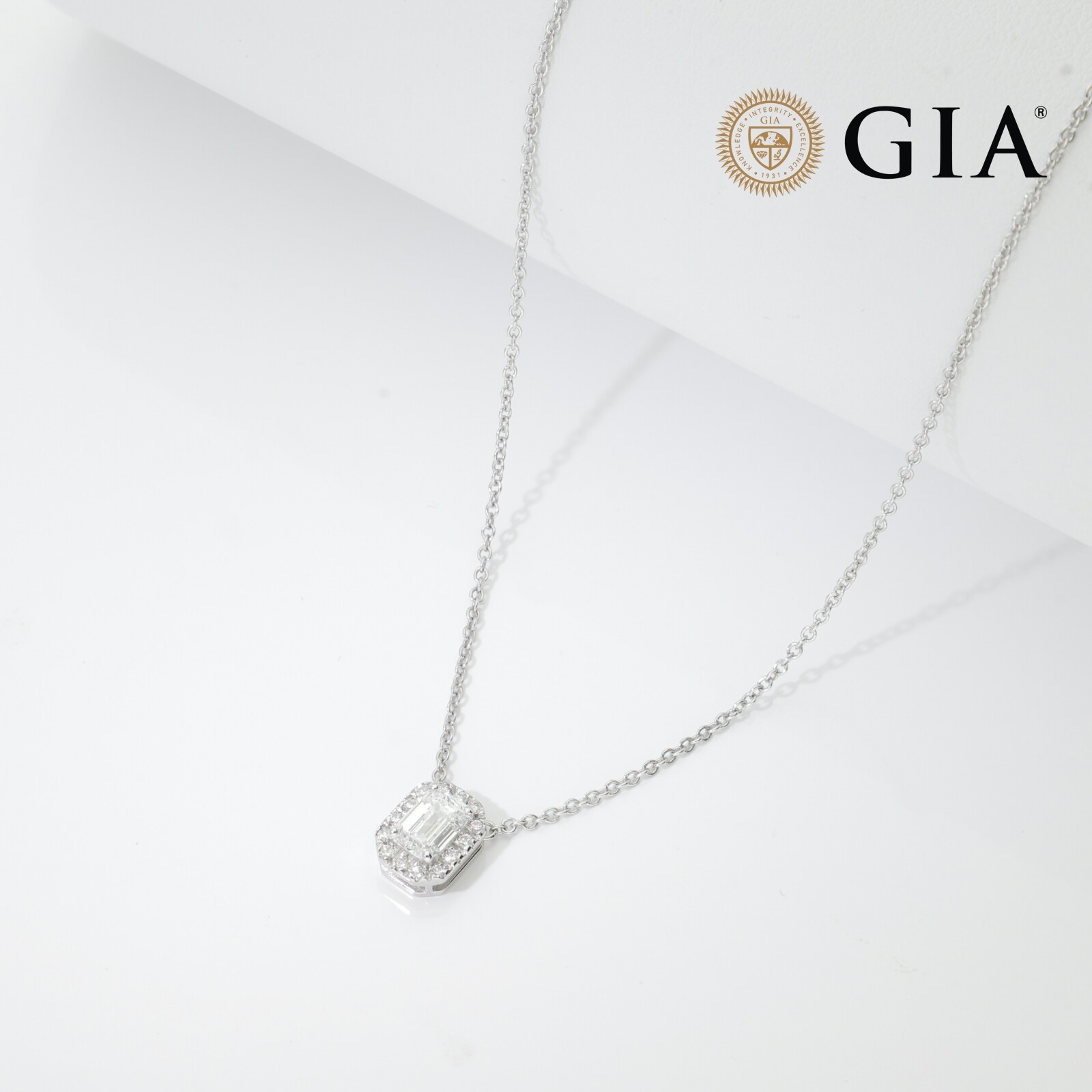 Kette mit Diamant Smaragdschliff 0.70 kt GIA 750er Weißgold