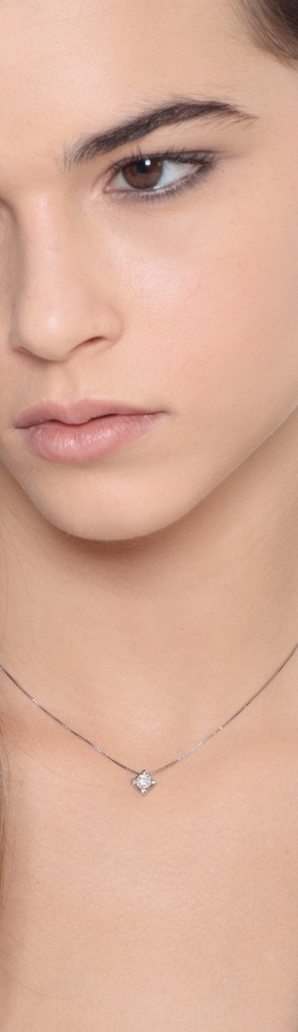 Moderne Solitär 18K Weßgold Kette mit Diamant-Anhänger