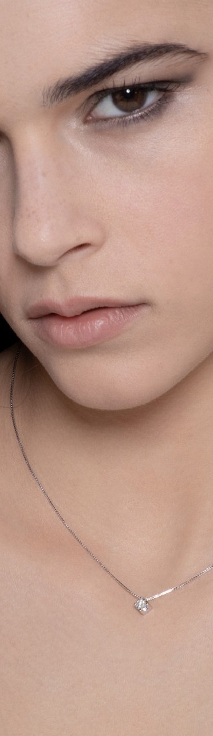 Weißgold 750 Damenkette mit Diamant in einer 4er Krappenfassung