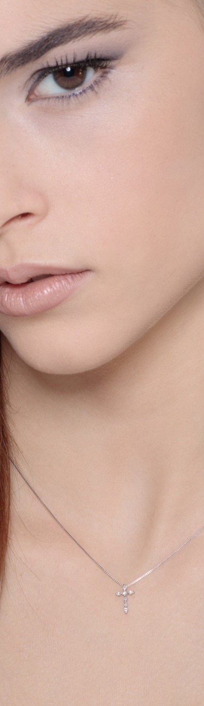 18K Weißgold Kette mit Kreuzanhänger aus Diamanten