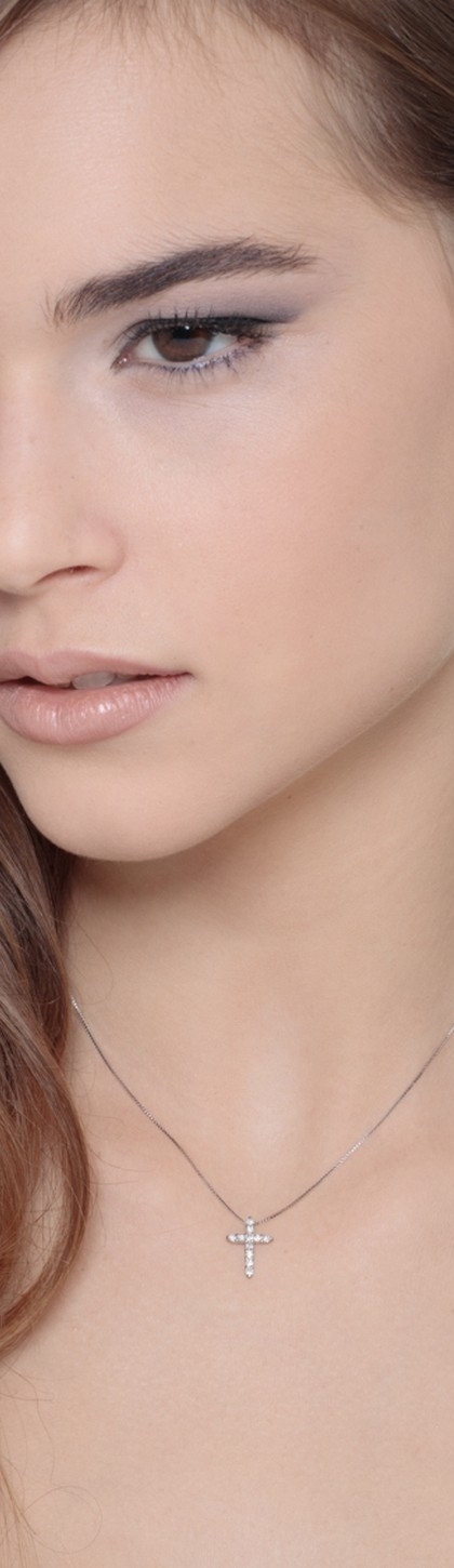 Halskette Kreuz Damen Weißgold mit Diamant-Anhänger