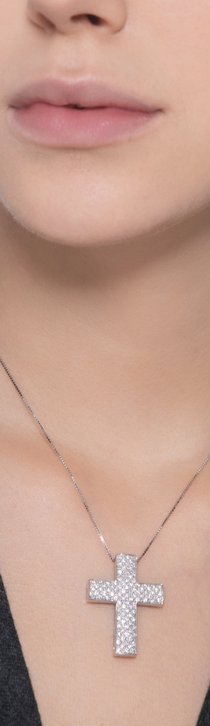 Weißgold 18K Kreuz Kette mit Brillanten
