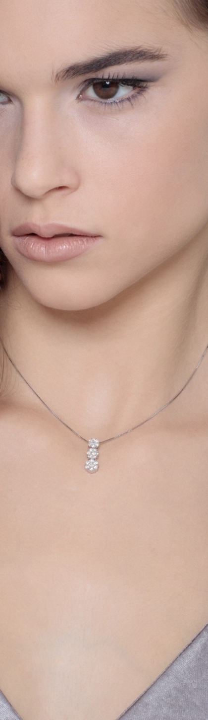 Weißgold 18k Kette mit drei Blumen aus Diamanten